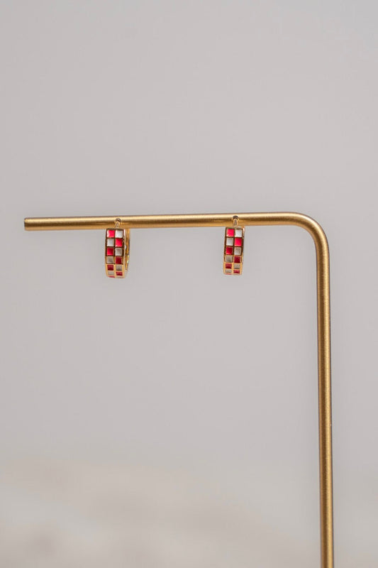 (Pink!) Check Me Out Checkered Huggie Hoops